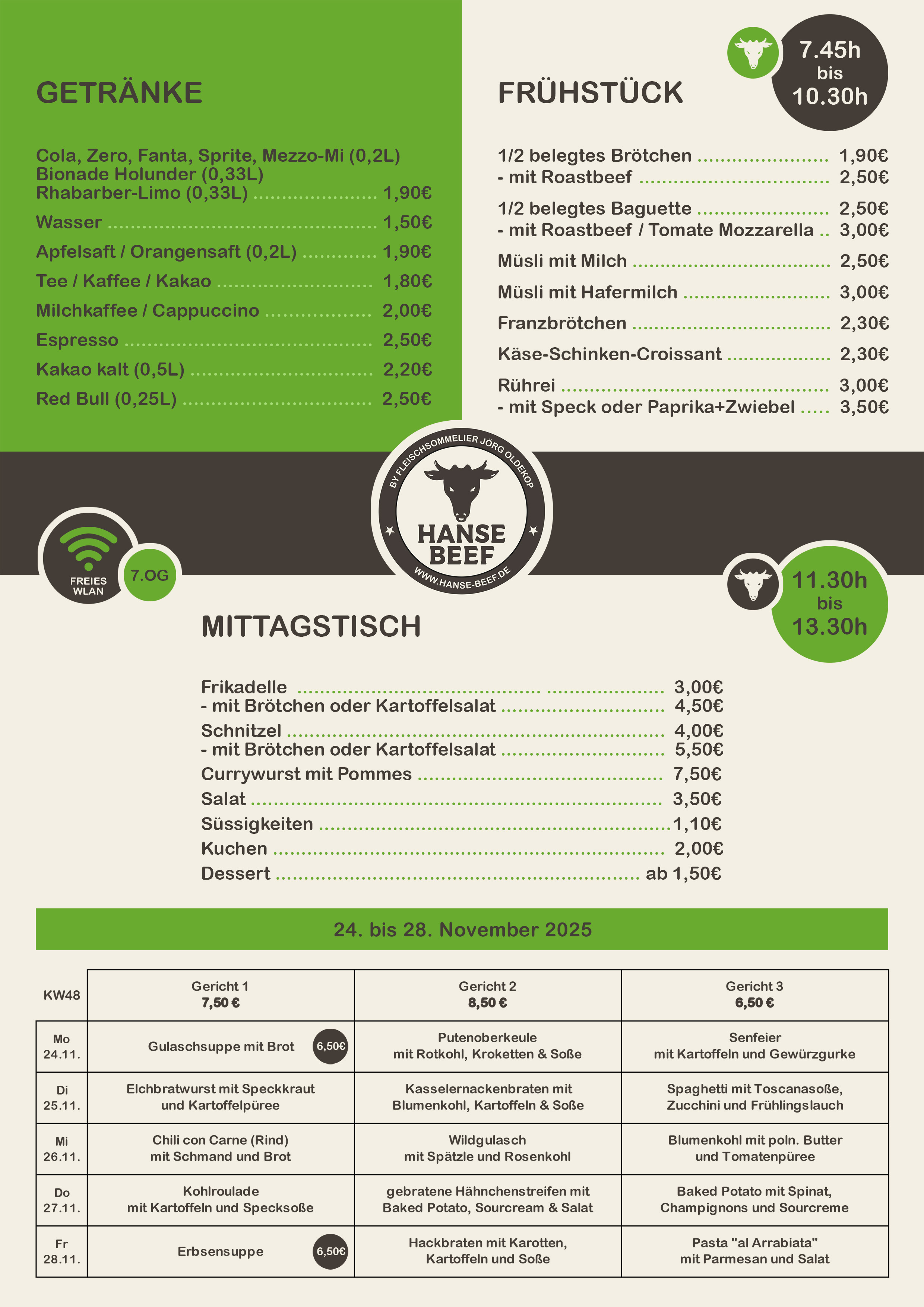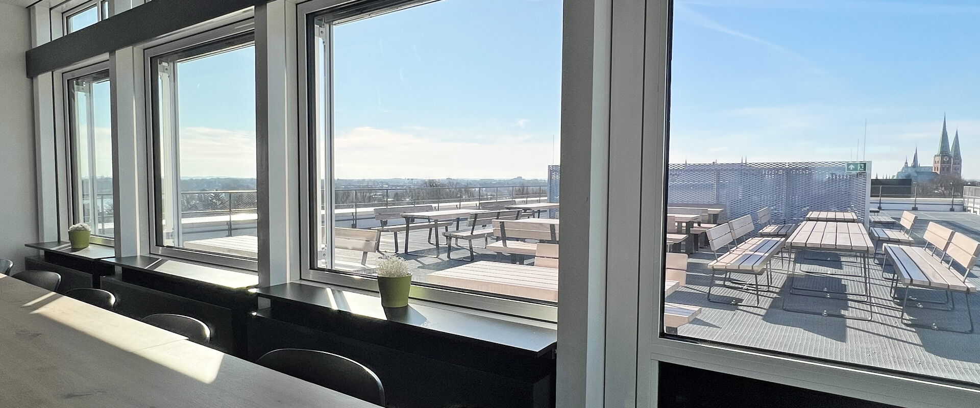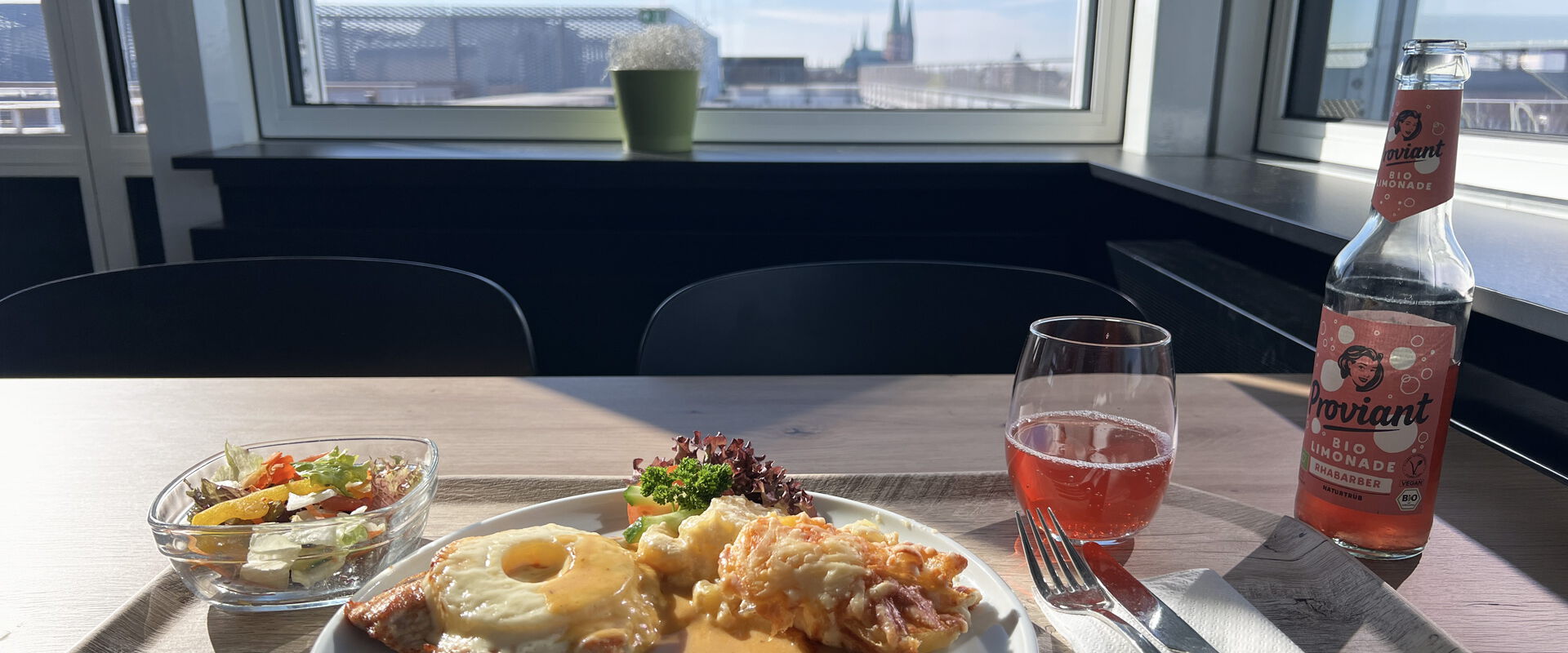 Genießen Sie unseren täglich wechselnden Mittagstisch über den Dächern Lübecks. Im 7. Obergeschosses des Landgerichtes Lübeck wählen Sie aus 3 Gerichten, davon jeweils ein vegetarisches.